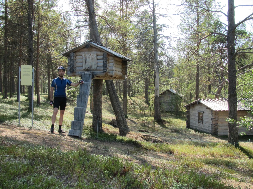 The construction above is not a house for squirrels, as I myself thought: as the panel says, it is an old version of a fridge (or freezer, depending on the season). Since the forest around here is populated by predators (wolverines, lynxes, bears), the food was kept outside enough high so that they couldn’t reach it. The ladder was only used for reaching the “storage room”, otherwise it was taken away. Very ingenuous.